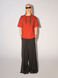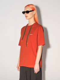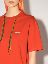 Made from 100% cotton, the red T-shirt features colored multichord drawstrings, drop shoulders and the AMBUSH® logo embroidered at the front. Product ID: BWAA029F22JER0012502 SIZING MODEL MARTINA WEARS SIZE M HEIGHT: 5’ 8” (178 CM) BUST: 33” (84 CM) WAIST: 24” (61 CM) HIPS: 35” (90 CM) MATERIAL FABRIC 100% COTTON