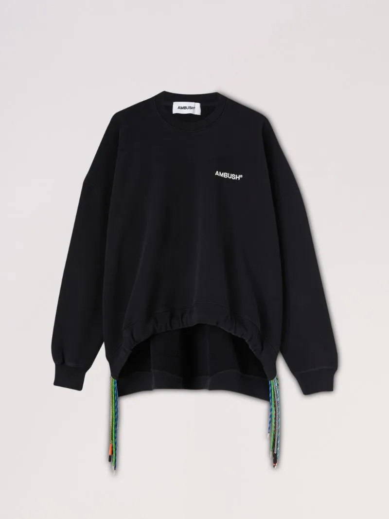 Made from 100% cotton, the crewneck sweatshirt with multichord detailing on both sides of the hem features the signature AMBUSH® logo detailing in white at the front. Product ID: BWBA019F22FLE0011010 MATERIAL FABRIC 100% COTTON