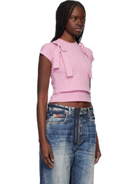 Stretch cotton jersey T-shirt. Integrated tank top-style overlay with bow accents. · Layered construction · Rib-knit crewneck · Logo embroidered at front · Cropped hem Supplier color: Pink 95% cotton, 5% polyurethane. Made in Japan 251820F110002