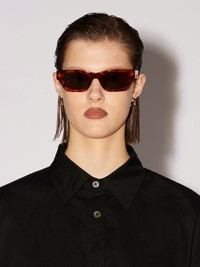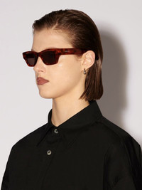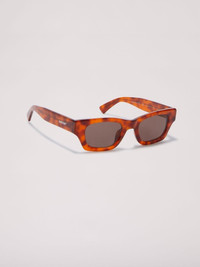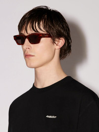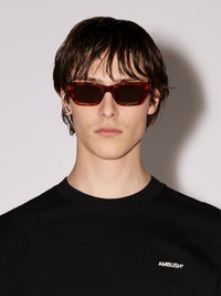 The rectangular, tortoise acetate "RAY" sunglasses come with light brown lenses. The distinctive low profile frame front is accented with the AMBUSH® logo printed on the side. Product ID: BERI002C99PLA0016460 MATERIAL MATERIAL 1 100% ACETATE