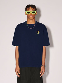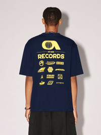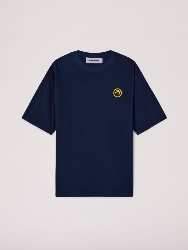 Made from 100% cotton, the short-sleeved, navy blue t-shirt is detailed with the seasonal graphic logo embroidery in yellow at the front, as well as AMBUSH® records graphics logos on the back. Product ID: BMAA066S23JER0014618 SIZING MODEL CLINTON WEARS SIZE M HEIGHT: 6’ 13” (187 CM) BUST: 34” (87 CM) WAIST: 26” (68 CM) HIPS: 36” (92 CM) MODEL HARLEY WEARS SIZE M HEIGHT: 5’ 11” (180 CM) BUST: 32” (82 CM) WAIST: 24” (61 CM) HIPS: 35” (89 CM) MATERIAL FABRIC 100% COTTON