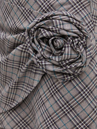 rose-appliqué plaid skirt