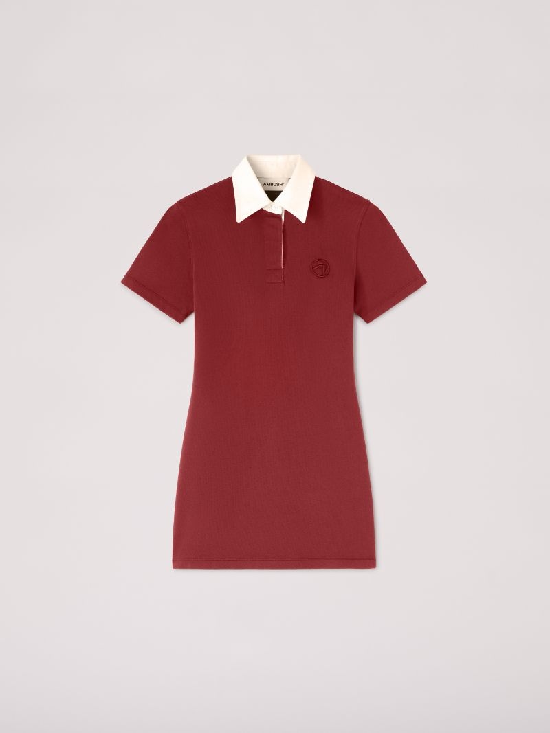 This rugby polo dress features a half button placket, and the 'AMBLEM' logo embroidered on the front. Product ID: BWDE002F24JER0012828 SIZING Model Tat wears size S Height: 5’ 11” (180 cm) Bust: 31.5” (80 cm) Waist: 24" (63 cm) Hips: 34.5" (87 cm)
