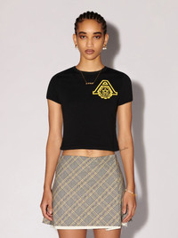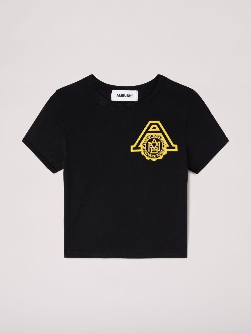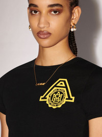 The baby tee made from 100% organic cotton features the AMBUSH® scholarship logo at the front. Product ID: BWAA049S24JER0011018 SIZING Model Sophie wears size S Height: 5’ 10” (178 cm) Bust: 32.5” (82 cm) Waist: 24" (64 cm)