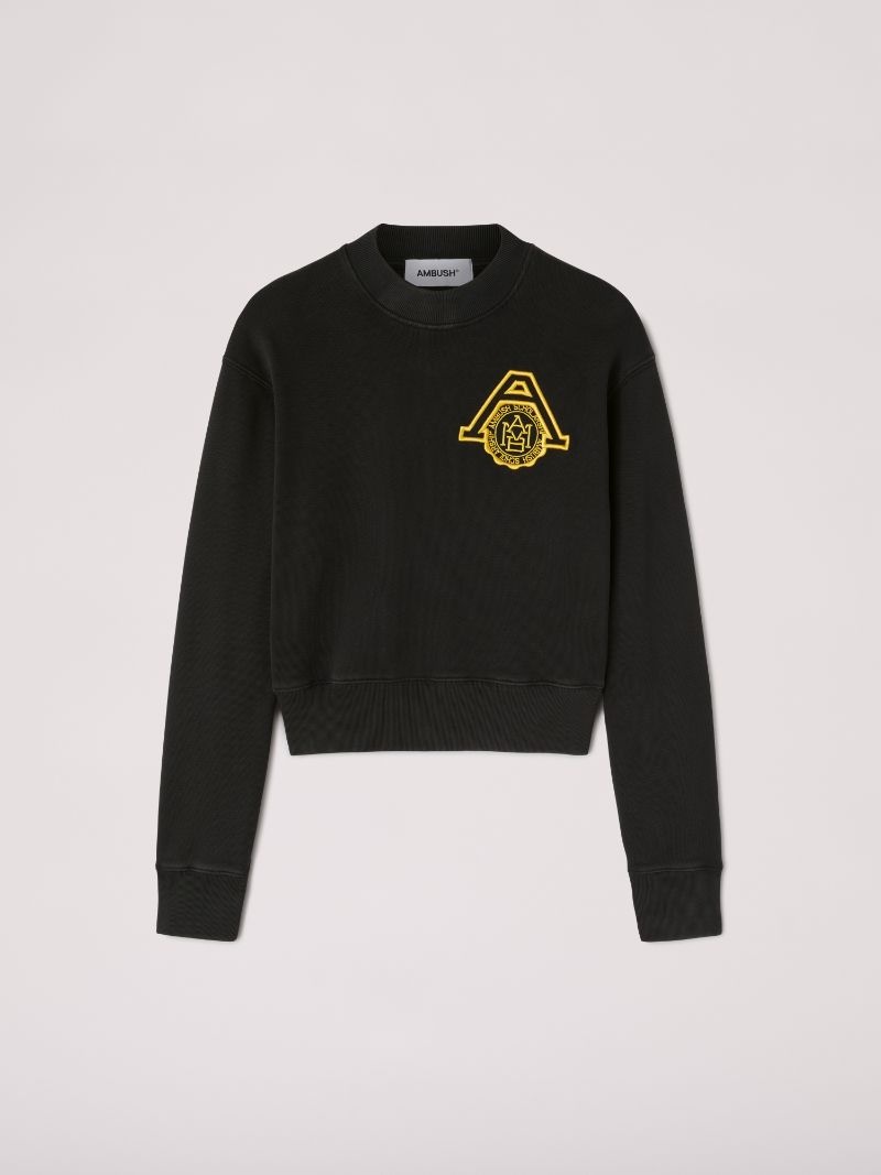 Made from 100% cotton, the cropped sweatshirt features the AMBUSH® scholarship logo on the front. Product ID: BWBA001S24JER0011018 SIZING Model Martina wears size S Height: 5’ 11” (180 cm) Bust: 34” (87 cm) Waist: 24" (63 cm)