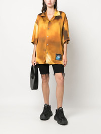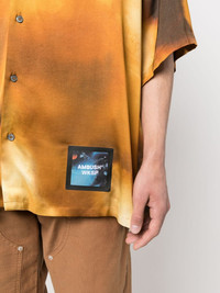 short-sleeved bowling shirt Highlights - Yellow - Abstract pattern print - Logo patch to the front - Notched collar - Front button fastening - Short sleeves - Straight hem - When buying this unisex item, keep in mind that it is graded in standard men's sizing. Made in Italy Composition Viscose 100% SIZE & FIT Model measurements Height 5 ft 9 in(1.76 m) Bust/Chest 33.07 in(84 cm) Hips 34.64 in(88 cm) Waist 25.59 in(65 cm) Washing instructions Dry Clean Only