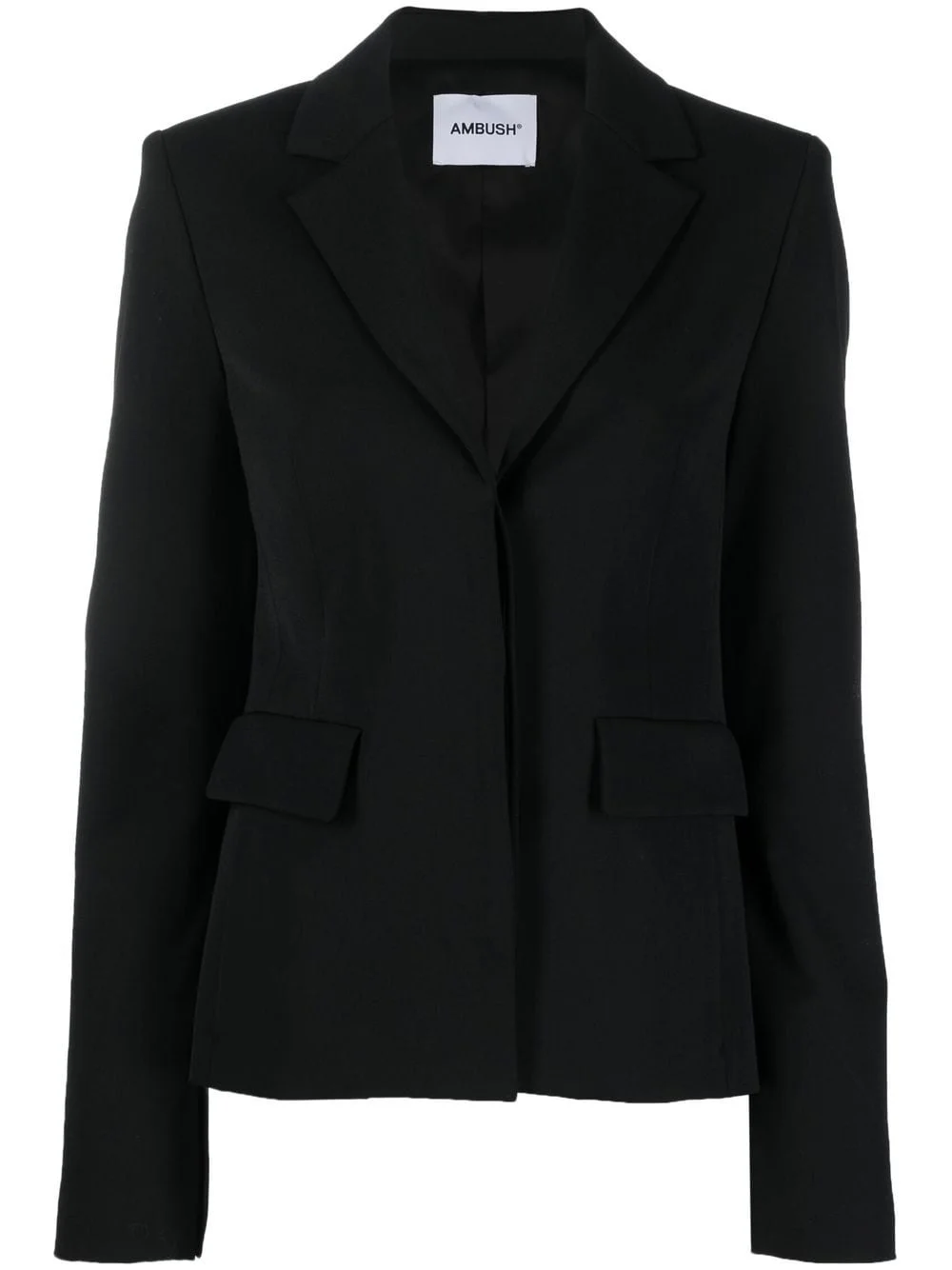 single-breasted blazer Led by the Tokyo-based brand’s innovative design style, this single-breasted blazer from AMBUSH is an update of the classic silhouette. It features a straight cut enhanced by a concealed front fastening. Made in Italy Composition Lining: Cotton 50%, Viscose 50% Outer: Polyester 53%, Virgin Wool 43%, Spandex/Elastane 4% SIZE & FIT Model measurements Height 5 ft 11 in(1.8 m) Bust/Chest 31.49 in(80 cm) Hips 36.61 in(93 cm) Waist 24.4 in(62 cm) FittingInformation This piece fits true to size. We recommend you get your regular size Cut for a slim fit Made with a mid-weight fabric Washing instructions Dry Clean Only