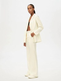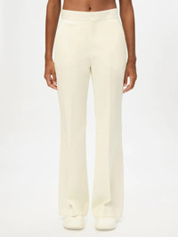 Slim fit flared pants. Product ID: BWCA023S22FAB0010100 SIZING MODEL SALLY WEARS SIZE 40 HEIGHT: 5’ 11" (180 CM) BUST: 32” (81 CM) WAIST: 24” (63 CM) HIPS: 35” (90 CM) MATERIAL FABRIC: WOOL100%