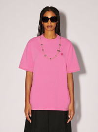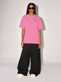 Made from 100% cotton, the short-sleeved, pink t-shirt features stoppers detailing and the AMBUSH® monogram logo embroidered at the front. Product ID: BMAA055S23JER0013230 SIZING MODEL CLINTON WEARS SIZE M HEIGHT: 6’ 13” (187 CM) BUST: 34” (87 CM) WAIST: 26” (68 CM) HIPS: 36” (92 CM) MODEL HARLEY WEARS SIZE M HEIGHT: 5’ 11” (180 CM) BUST: 32” (82 CM) WAIST: 24” (61 CM) HIPS: 35” (89 CM) MATERIAL FABRIC 100% COTTON