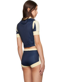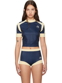 Polyester jersey T-shirt. Stripes and bonded trim throughout. · Rib-knit crewneck, armscyes, and cuffs · Logo embroidered at chest · Cropped hem Supplier color: Insignia blue
