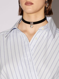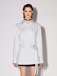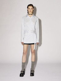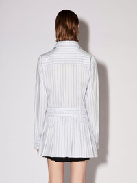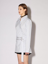 This striped shirt dressed features a diagonal front closure, adjustable belted straps, as well as pleat detailing at the back. Product ID: BWDB054F23FAB0014146 SIZING MODEL DIANA WEARS SIZE 40 HEIGHT: 5’ 87” (179 CM) BUST: 35"" (88 CM) WAIST: 24"" (61 CM) HIPS: 35"" (88 CM) MATERIAL FABRIC 26% POLYESTER 74% COTTON