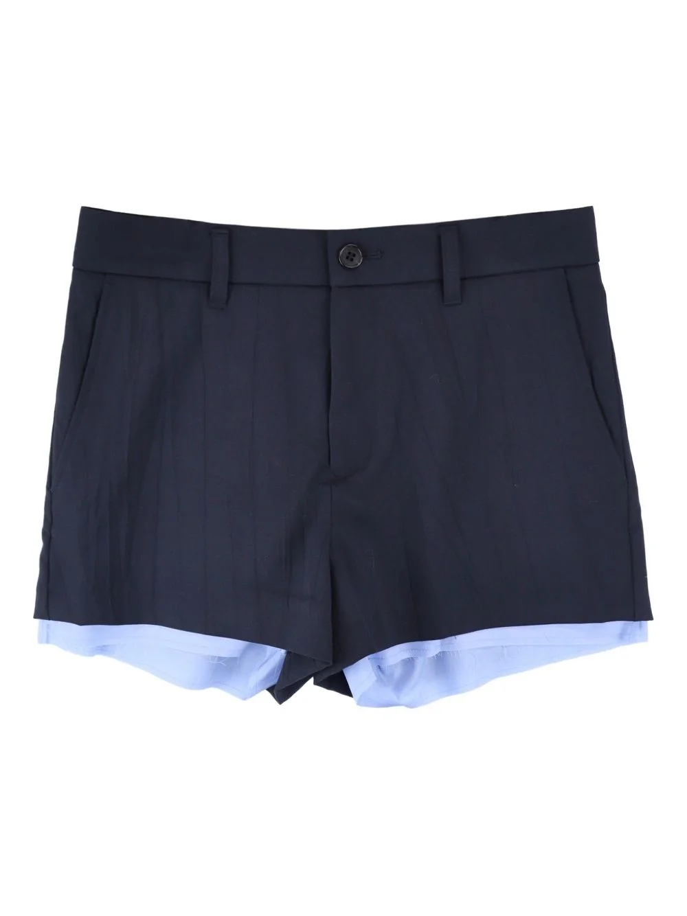 tailored shorts Highlights - Navy blue - Tailored design - Contrasting hem - Front pockets - Single back pocket Imported Composition Polyester 70%, Wool 30%