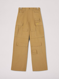 These oversized, beige cargo pants made from 100% cotton are endlessly versatile. Fitted with multiple large flap pockets, the mid-rise style features belt loops, and a classic zip & button closure. Product ID: BWCF003S23FAB0016200 MATERIAL FABRIC 100% COTTON