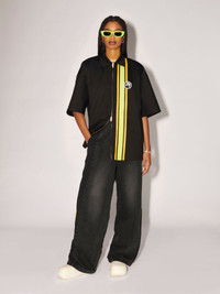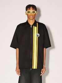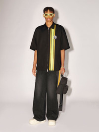 Made from 100% cotton, the unisex shirt features a classic collar, front-zip closure, stripe detailing, as well as an embroidered patch of the seasonal graphic logo. Product ID: BMGG001S23FAB0011001 SIZING MODEL CLINTON WEARS SIZE M HEIGHT: 6’ 13” (187 CM) BUST: 34” (87 CM) WAIST: 26” (68 CM) HIPS: 36” (92 CM) MODEL HARLEY WEARS SIZE M HEIGHT: 5’ 11” (180 CM) BUST: 32” (82 CM) WAIST: 24” (61 CM) HIPS: 35” (89 CM) MATERIAL FABRIC 100% COTTON