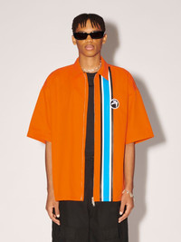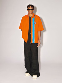 Made from 100% cotton, the unisex shirt features a classic collar, front-zip closure, stripe detailing, as well as an embroidered patch of the seasonal graphic logo. Product ID: BMGG001S23FAB0012001 SIZING MODEL CLINTON WEARS SIZE M HEIGHT: 6’ 13” (187 CM) BUST: 34” (87 CM) WAIST: 26” (68 CM) HIPS: 36” (92 CM) MODEL HARLEY WEARS SIZE M HEIGHT: 5’ 11” (180 CM) BUST: 32” (82 CM) WAIST: 24” (61 CM) HIPS: 35” (89 CM) MATERIAL FABRIC 100% COTTON