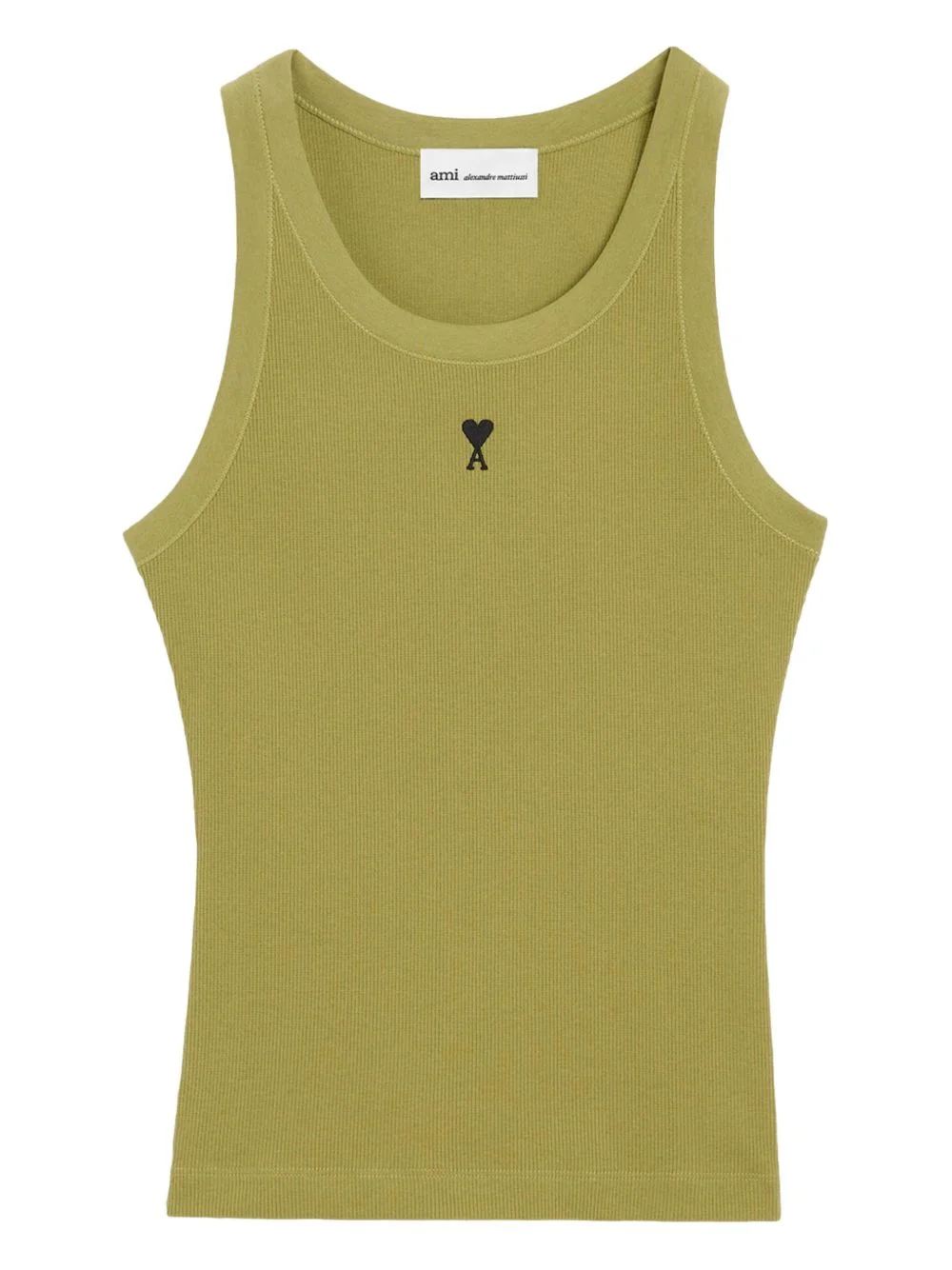ami de coeur ribbed tank top Highlights - Green - Ribbed - Chest embroidery - Tonal embroidery - Round neck - Sleeveless Imported Composition Cotton 98%, Lurex 2% Washing instructions Read Manufacturer Guidelines