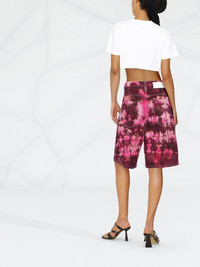 Alex tie-dye shorts AMI Paris was founded in France and uses the capital city as its main source of inspiration. Cut for a wide-leg fit, these shorts are presented in a pink tie-dye effect for a bold aesthetic. Highlights - Fuchsia pink - White - Cotton - Tie-dye print - Logo patch to the rear - High-waisted - Belt loops - Front button and zip fastening - Classic five pockets - Straight leg - Knee-length - When buying this unisex item, keep in mind that it is graded in standard men's sizing. Imported Composition Cotton 100% Washing instructions Read Manufacturer Guidelines
