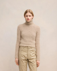 Sweater in mohair and alpaca brushed knit. Jersey stitch Brushed after knitting 48 cm center back length (size S) Made in Italy (with love) REF : FKS447.KN0056.250 SIZE & FIT This item is designed for a close fit. Take your normal size. Model is 1m78 / 5'10" and is wearing a size XS. COMPOSITION & CARE GUIDE 41% Alpaca, 41% Mohair, 16% Polyamide, 2% Elastane Hand wash low temperature Chlorine prohibited Do not tumble dry Flat drying in the shade Cool iron Dry clean gentle