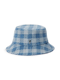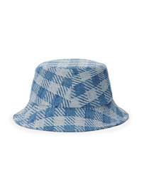 Ami de Coeur bucket hat aqua blue/light blue cotton washed denim check pattern silver-tone logo plaque dropped narrow brim When buying this unisex item, keep in mind that it is graded in standard men's sizing. Imported Composition Cotton 100%