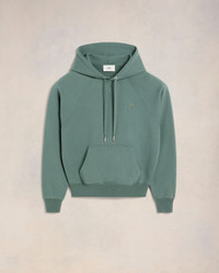 Hoodie in heavy loopback organic cotton fleece. Boxy fit Unisex product 61 cm center back length (Size XS) 65 cm center back length (Size M) Tonal Ami de Coeur chest embroidery Tonal "AMI" embroidery on the back Raglan sleeves Nickel color metal ends and "ami" engraved eyelets Garment dye style with a wash effect Made in Portugal (with love) REF : USW240.JE0091.4013 SIZE & FIT This style is unisex. For man, take your normal size. For woman, take one size down than your usual size. Man model is 1m89 / 6'2" and is wearing a size M. Woman model is 1m78 / 5'10" and is wearing a size XS. COMPOSITION & CARE GUIDE 100% Cotton Chlorine prohibited Machine wash at 30°C gentle Cool iron Do not dry clean Do not tumble dry