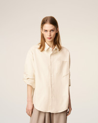 BEIGE COTTON EMBOSSED AMI DE COEUR BOXY SHIRT