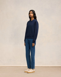 Ami de Coeur sweatshirt in loopback organic cotton fleece. Classic fit Unisex Product 61 cm center back length (size XS) 69 cm center back length (size M) Tonal Ami de Coeur chest embroidery Tonal "AMI" embroidery under back neckline Made in Portugal (with love) REF : USW003.730.430 SIZE & FIT This style is unisex. For man, take your normal size. For woman, take one size down than your usual size. Man model is 1m83 / 6'0" and is wearing a size M. Woman model is 1m79 / 5'10" and is wearing a size XS. COMPOSITION & CARE GUIDE 100% Cotton Chlorine prohibited Machine wash at 30°C gentle Do not tumble dry Cool iron Do not dry clean