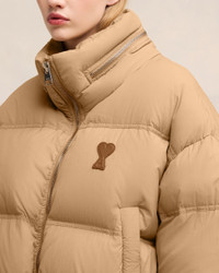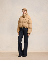 Down jacket in technical canvas. 56,5 cm center back length (size XS) Down and feather filling Hidden hood in the collar Ribbed cuffs Nickel color metal zipper double sliders Front and inside pockets with invisible snap buttons Adjustable cord at waist Ami de Coeur leather patch on the chest Water-repellent fabric Made in Madagascar (with love) REF : FJK413.PA0009.255 SIZE & FIT Fits true to size. Take your normal size. Model is 1m78 / 5'10" and is wearing a size XS. COMPOSITION & CARE GUIDE 98% Polyamide, 2% Polyurethane Do not wash Chlorine prohibited Do not tumble dry Cool iron Dry clean petroleum solvent only on a gentle process