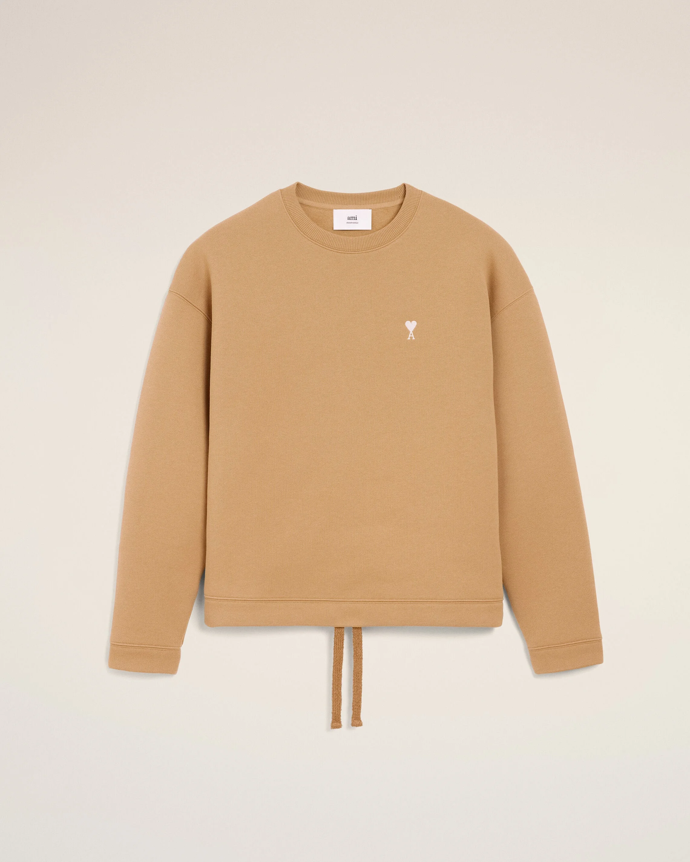 Sweatshirt in brushed cotton fleece. Limited Edition - Ami Holidays Capsule Unisex product Boxy fit Ivory Ami de Coeur embroidery Tonal "ami" embroidery under back neckline Mohair drawstring on the bottom body 61 cm center back length (XS size) 65 cm center back length (M size) Made in Portugal (with love) REF: USW772.JE0123.280 SIZE & FIT This style is unisex and it's design to be worn oversize. Take your normal size. Woman model is 178 cm / 5"9 and is wearing a size XS. Man model is 189 cm / 6"2 and is wearing a size M. COMPOSITION & CARE GUIDE Main Material : 100% Cotton Collar : 35% Acrylic 25% Mohair 25% Polyamide 10% Polyester 5% Other Fibers Collar : 99% Cotton 1% Elastane Chlorine prohibited Do not tumble dry Dry clean possible Wash with similar colours Cool iron Wash inside out Machine wash at 30°c gentle