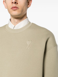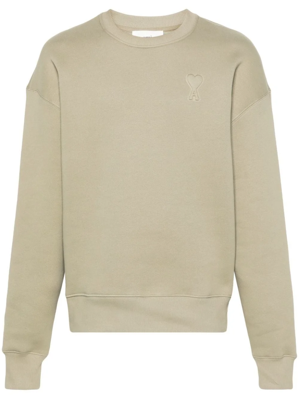 Ami de Coeur embossed sweatshirt Embracing a minimalist aesthetic, this AMI Paris sweatshirt is adorned with a subtle Ami de Coeur motif embossed on the chest. It's made in Portugal from a cotton blend and is presented in a sage-green hue. Highlights - Sage green - Cotton blend - Jersey texture - Signature embossed ami de coeur monogram - Crew neck - Drop shoulder - Long sleeves - Ribbed cuffs and hem - Straight hem - Fleece lining Imported Composition Cotton 69%, Polyester 31% SIZE & FIT Measurement CHEST 45.66 in(116 cm) SLEEVE LENGTH 23.62 in(60 cm) Shoulder Width 23.22 in(59 cm) FittingInformation This unisex piece is designed for a loose fit whether you usually select women's or men's sizes The ribbed hem offers a close, comfortable fit Made from a midweight non-stretch fabric, this piece offers minimal elasticity when worn