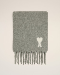 Oversized scarf in alpaca, pure wool and polyamide blend. Unisex product Off white Ami de Coeur jacquard Size without the fringes: 32 x 235 cm Length of the fringes: 13 cm each side Made in Italy (with love) REF: USF673.AW0004.050 SIZE & FIT Size without the fringes: 32 x 235 cm Length of the fringes: 13 cm each side COMPOSITION & CARE GUIDE Main Material : 80% Alpaca 20% Polyamide Do not wash Chlorine prohibited Do not tumble dry Cool iron Dry clean petroleum solvent only on a gentle process