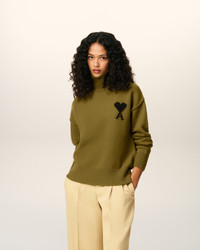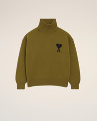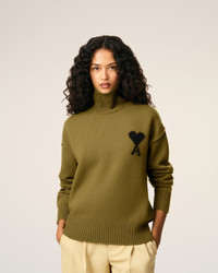 KHAKI WOOL AMI DE COEUR FUNNEL NECK SWEATER