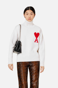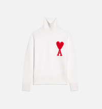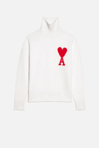 Product Description Off-white/red wool Ami De Coeur roll-neck wool jumper from AMI Paris featuring signature Ami de Coeur monogram motif, embroidered logo at the chest, roll neck, long sleeves and ribbed trim. When buying this unisex item, keep in mind that it is graded in standard men's sizing.. Sweater in felted merino wool. - Unisex product - Funnelneck - Oversized fit - Jersey stitch - Red intarsia knitted Ami de Cœur - 67 cm middle back length (size M) - 60 cm middle back length (size XS) - RWS certified product REF BFUKS402.018154 Size & Fit This style is unisex and it's design to be worn oversize. For man, take your normal size. For woman, take one size down than your usual size. Materials & Care Instructions Hand wash low temperature Do not bleach Do not tumble dry Dry flat Cool iron Dry clean possible