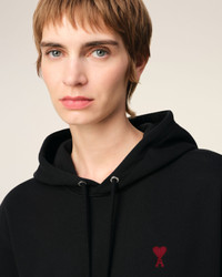 Ami de Coeur hoodie in loopback organic cotton fleece. Classic fit Unisex Product 61 cm center back length (size XS) 69 cm center back length (size M) Red Ami de Coeur chest embroidery Tonal "AMI" embroidery under back neckline Nickel color metal ends and "ami" engraved eyelets Made in Portugal (with love) REF : BFUSW235.730.001 SIZE & FIT This style is unisex. For man, take your normal size. For woman, take one size down than your usual size. Man model is 1m85 / 6'1" and is wearing a size M. Woman model is 1m78 / 5'10" and is wearing a size XS. COMPOSITION & CARE GUIDE 100% Cotton Chlorine prohibited Machine wash at 30°C gentle Do not tumble dry Cool iron Do not dry clean