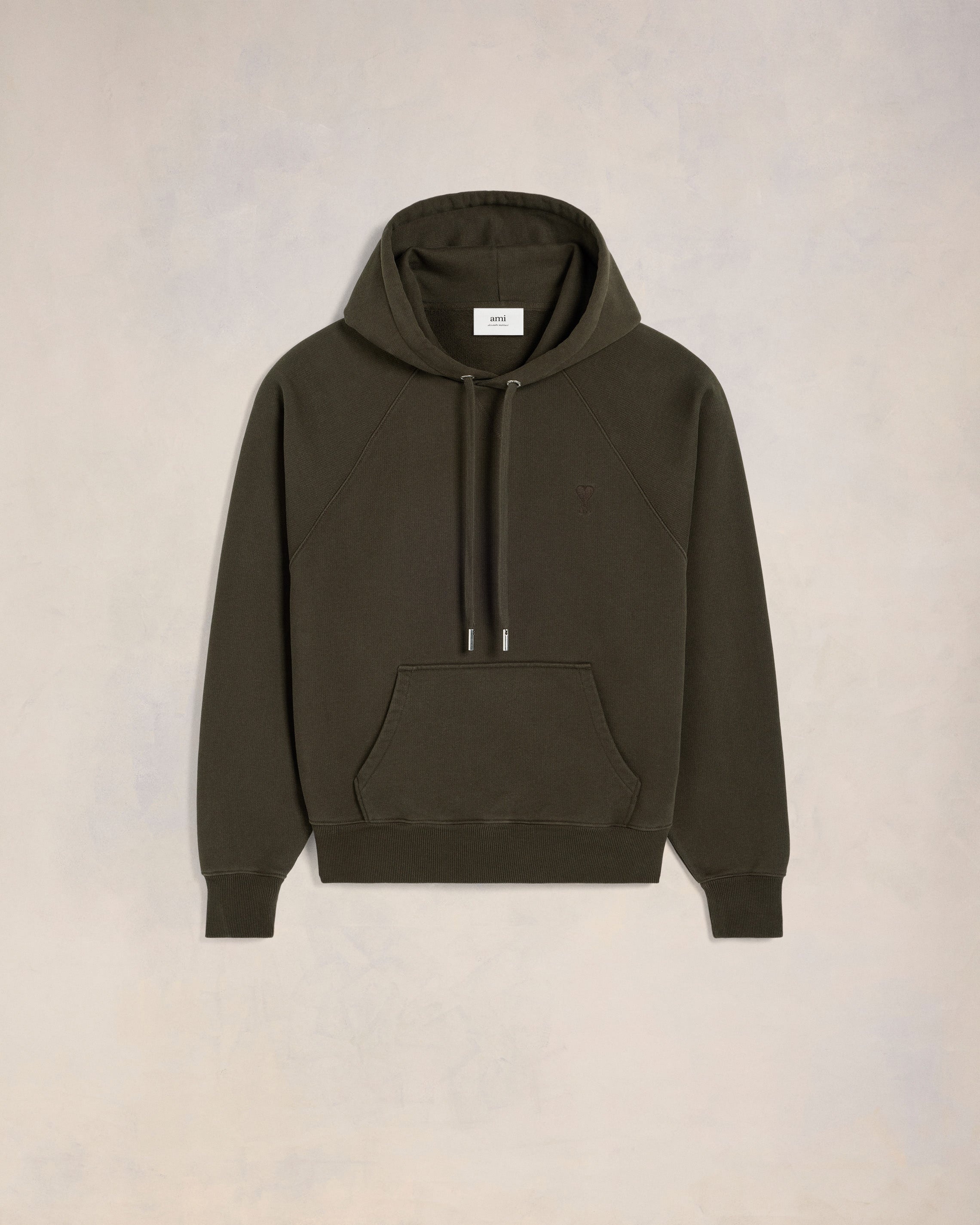 Hoodie in heavy loopback organic cotton fleece. Boxy fit Unisex product 61 cm center back length (XS size) 65 cm center back length (M size) Tonal Ami de Coeur chest embroidery Tonal "AMI" embroidery on the back Raglan sleeves Nickel color metal ends and "ami" engraved eyelets Garment dye style with a wash effect Made in Portugal (with love) REF : USW240.JE0091.221 SIZE & FIT This style is unisex. For man, take your normal size. For woman, take one size down than your usual size. Man model is 1m87 / 6'2" and is wearing a size M. Woman model is 1m73 / 5'8" and is wearing a size XS. COMPOSITION & CARE GUIDE 100% Cotton Chlorine prohibited Machine wash at 30°C gentle Cool iron Do not dry clean Do not tumble dry