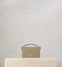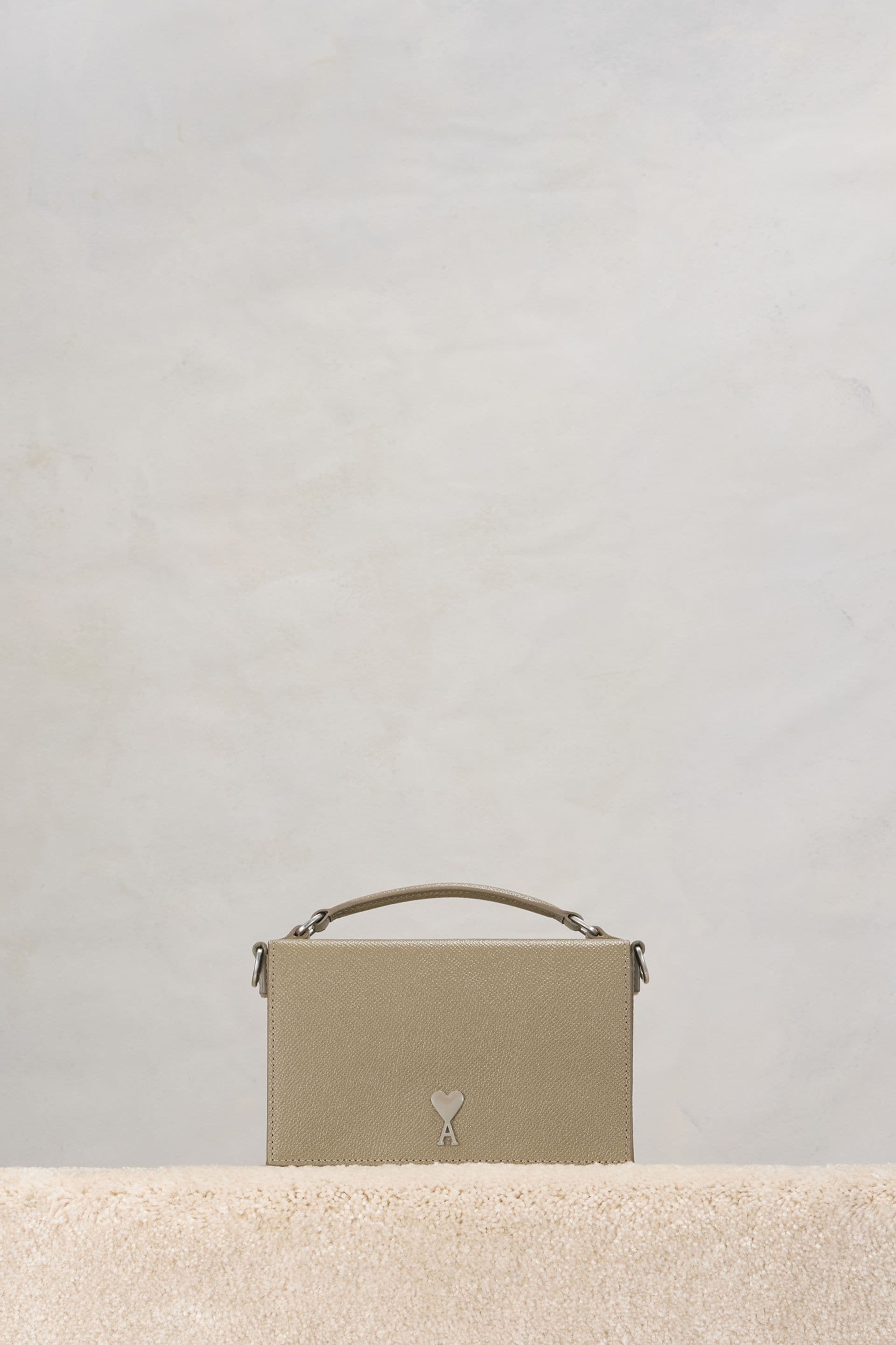 Product Description Lunch Box leather bag from AMI Paris featuring sesame beige, leather, tonal logo plaque, grained texture, foldover top, concealed magnetic fastening, leather strap, single top handle and main compartment. Lunch Box Bag in grained leather. - Suedette lining - Tonal Ami de Coeur rivet - One central compartment with inside patched pocket - Leather patched pocket on the back face - Adjustable and removable leather strap, crossbody or shoulder carry - Leather handle for a hand carry - Magnetic flap closure - Metal hardware in vibrated silver color - Size: 17x10x3.5 cm - Made in Morocco (with love) REF ULL104.AL0036281 Size & Fit One size. Materials & Care Instructions 100% Cow Leather