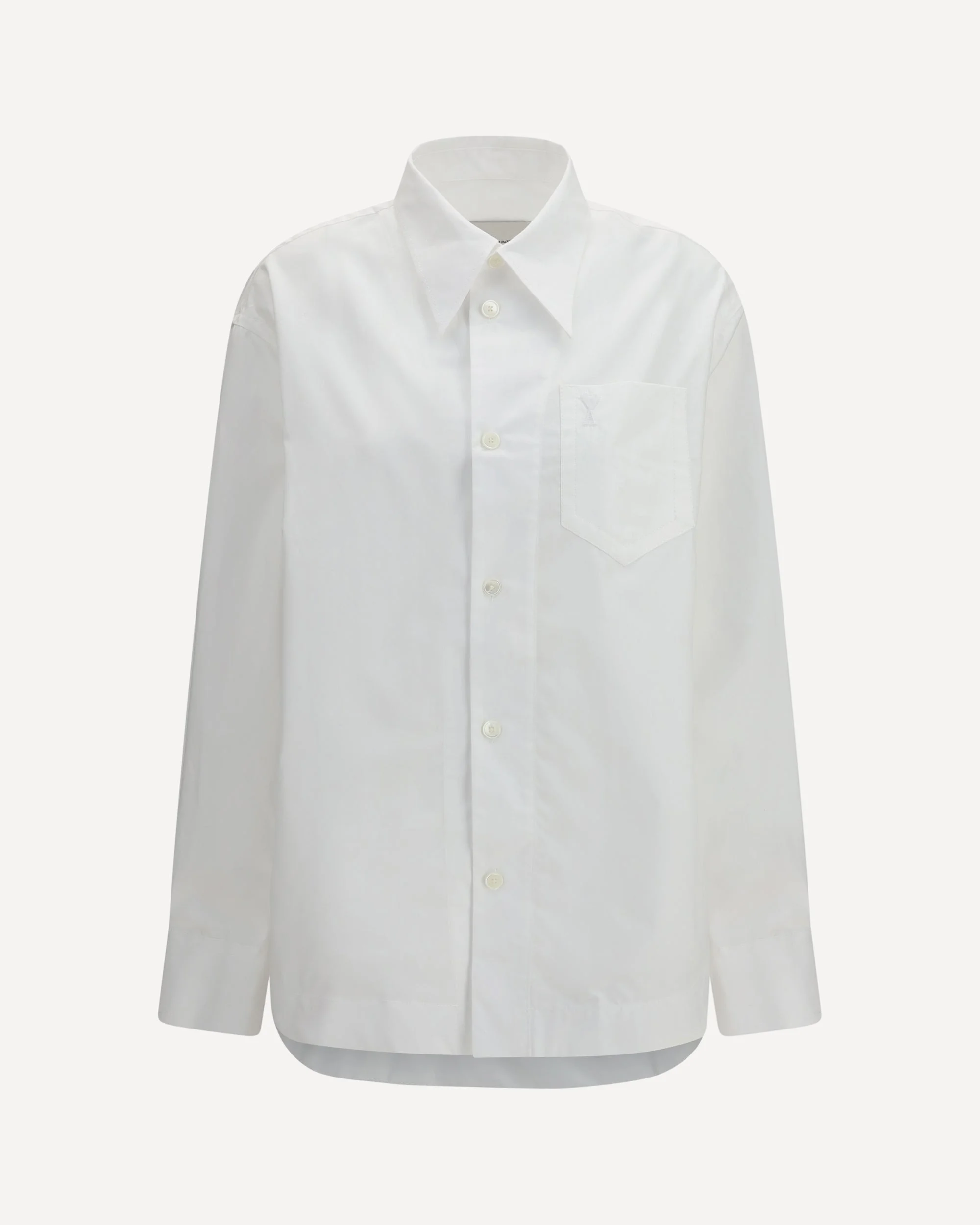 The Ami de Coeur Shirt by AMI Paris delivers everyday elegance through a clean, contemporary aesthetic. Designed with a wide silhouette and long sleeves, it features a sharp classic collar that adds structure to the look. A chest pocket and buttoned cuffs complete the design with refined, functional details, making it a versatile piece suited to both casual and more polished outfits. DETAILS - Sku: USH808CO0063_100 - Season: SS26 - Fit: Regular - Composition: GENERAL 100% Cotton - MADE IN POLAND