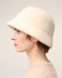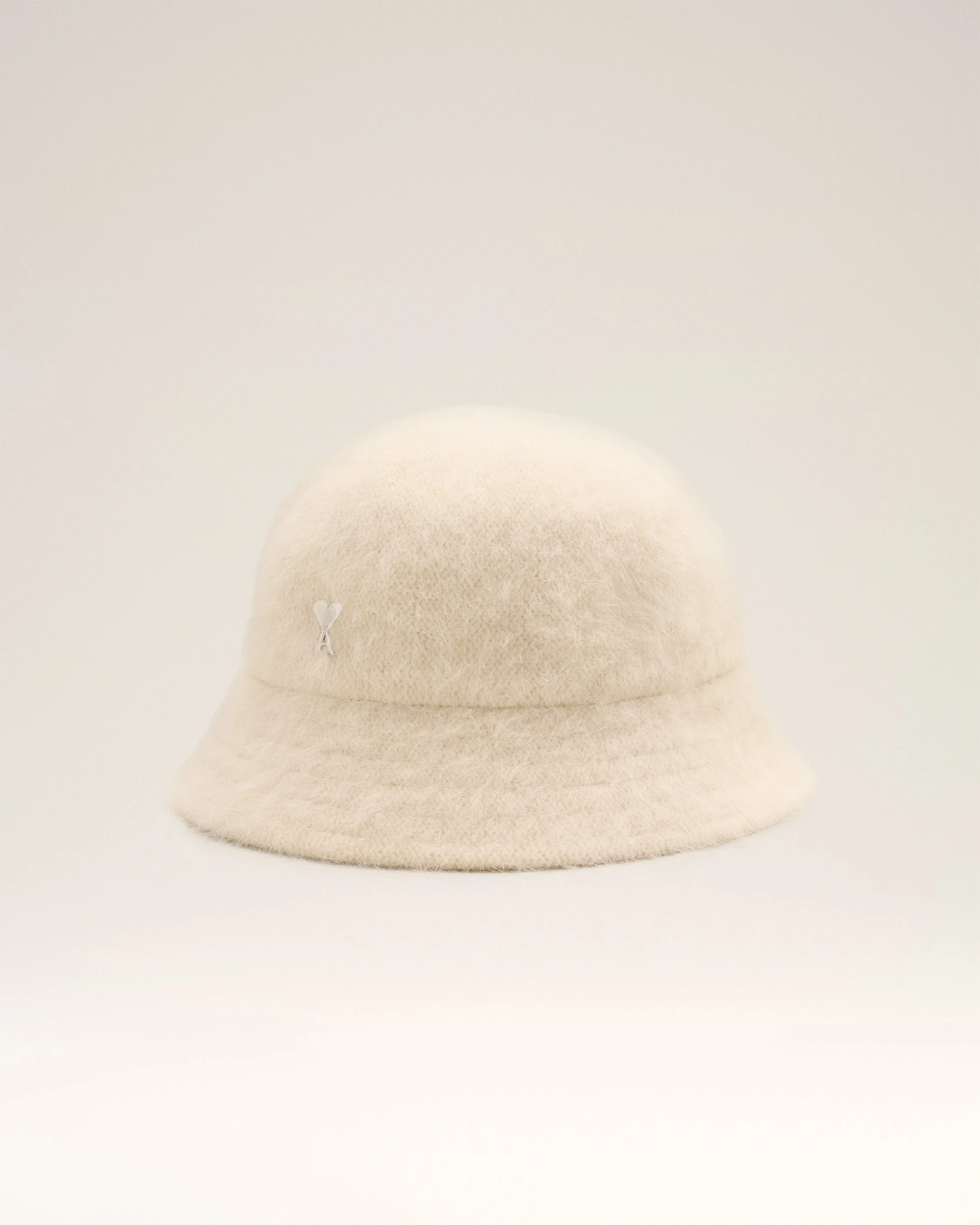 Bucket hat in blended angora. Ami de Coeur metallic stud Made in Italy (with love) REF : UHA236.AW0028.150 SIZE & FIT Fits true to size. Take your normal size. COMPOSITION & CARE GUIDE 70% Wool, 30% Acrylic Do not wash Chlorine prohibited Do not tumble dry Do not iron Dry clean possible
