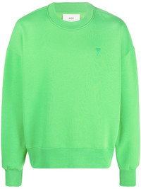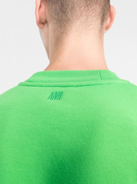 Ami de Coeur embroidered sweatshirt Embroidered in tonal thread, a signature Ami de Coeur monogram motif adds a subtle touch of logomania to this AMI Paris oversized sweatshirt. Highlights - Bright green - Organic cotton-recycled polyester blend - Signature ami de coeur monogram motif - Crew neck - Drop shoulder - Long sleeves - Fitted-cuff sleeves - Straight hem - When buying this unisex item, keep in mind that it is graded in standard men's sizing. Imported Composition Organic Cotton 66%, Recycled Polyester 34% Washing instructions Read Manufacturer Guidelines