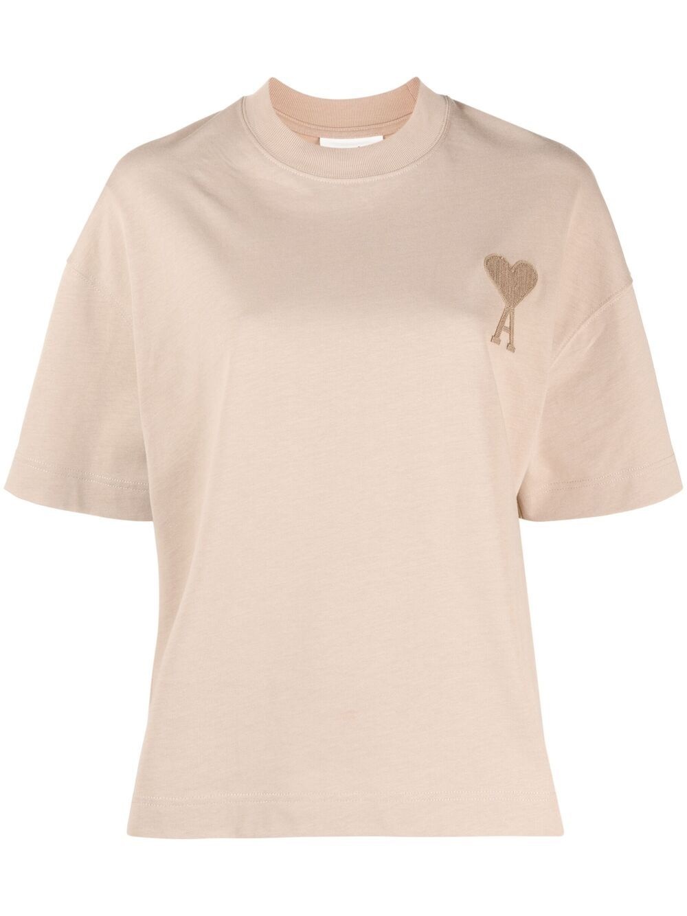 Beige organic cotton Ami de Coeur T-shirt from AMI Paris featuring round neck, signature Ami de Coeur monogram motif, short sleeves and straight hem. POSITIVELY CONSCIOUS: At least 50% of the main material of this product meets our conscious criteria. For example, it's either organic, recycled, upcycled or independently recognised as being better for the environment (such as linen, ramie, TENCEL™ etc.).. Highlights - Beige - Organic cotton - Round neck - Signature ami de coeur monogram motif - Short sleeves - Straight hem - Positively conscious: at least 50% of the main material of this product meets our conscious criteria. for example, it's either organic, recycled, upcycled or independently recognised as being better for the environment (such as linen, ramie, tencel™ etc.). Imported Composition Organic Cotton 100%