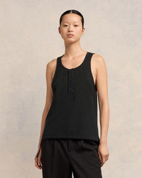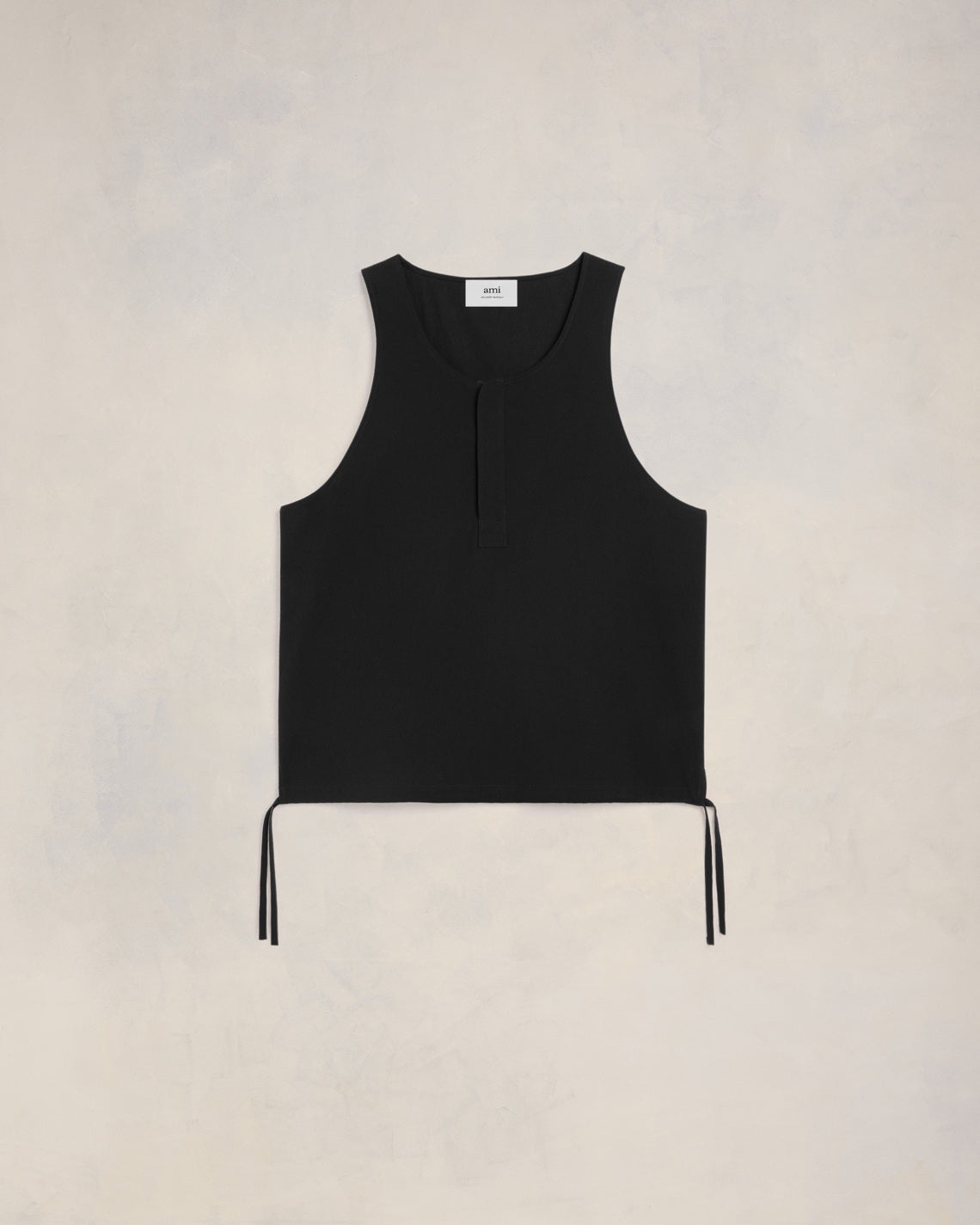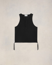 Tanktop with drawstrings in cotton crepe. Boxy fit Unisex product 66 cm center back length (size XS) 68 cm center back length (size M) Tonal Ami de Coeur embroidery under collar Polo placket Invisible snaps Adjustable drawstrings on each side at the bottom of the shirt Made in Bulgaria (with love) REF : UTK215.CO0062.001 SIZE & FIT This style is unisex. For man, take your normal size. For woman, take one size down than your usual size. Man model is 1m84 / 6' ½ and is wearing a size M. Woman model is 1m79 / 5'9" and is wearing a size XS. COMPOSITION & CARE GUIDE 100% Cotton Chlorine prohibited Do not tumble dry Dry clean gentle Cool iron Do not wash