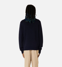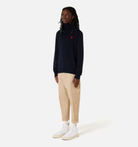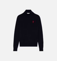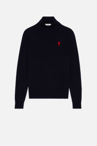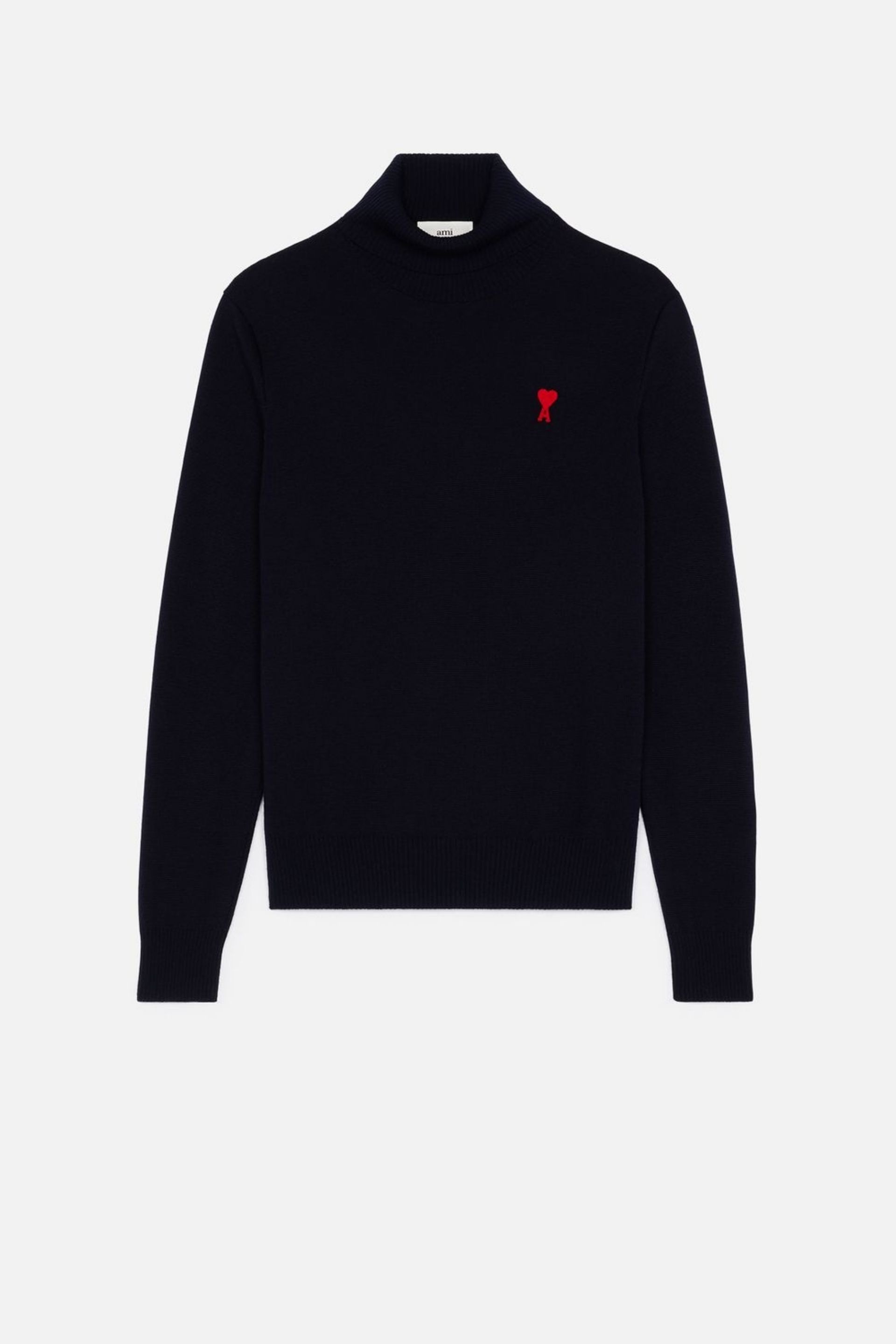 Product Description Navy merino wool Ami De Coeur turtleneck jumper from AMI Paris featuring ribbed-knit edge, embroidered logo at the chest, straight hem, long sleeves and roll neck.