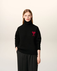 BLACK WOOL AMI DE COEUR FUNNEL NECK SWEATER