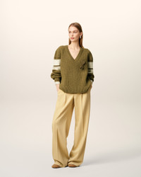 Sweater in college wool ribbed knit. Unisex product Crewneck Half english ribs stitch Ami de Coeur patch embroidered on chest Textured yarn on sleeves, body bottom and cuffs 68 cm center back length (size M) 64 cm center back length (size XS) Made in Portugal (with love) REF: UKS823.KN0111.374 SIZE & FIT This style is unisex. For man, take your normal size. For woman, take one size down than your usual size. Man model is 187 cm / 6"2 and is wearing a size M. Woman model is 177 cm / 5"9 and is wearing a size XS. COMPOSITION & CARE GUIDE Main Material : 92% Wool 5% Alpaca 2% Polyamide 1% Elastane Hand wash low temperature Chlorine prohibited Do not tumble dry Flat drying in the shade Cool iron Dry clean gentle
