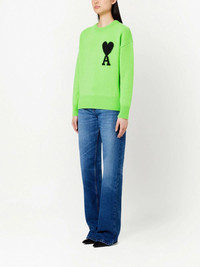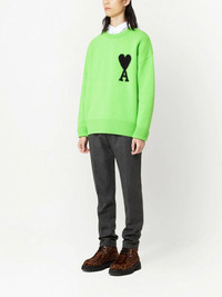 Ami de Coeur wool jumper Crafted from insulating wool, this AMI Paris jumper boasts the Ami de Coeur motif to the front. A brand signature, this logo is taken from founder Alexandre Mattiussi's sign off in letters to friends. Highlights - Green/black - Wool - Ribbed trim - Signature ami de coeur monogram motif - Crew neck - Long sleeves - When buying this unisex item, keep in mind that it is graded in standard men's sizing. Imported Composition Wool 100%