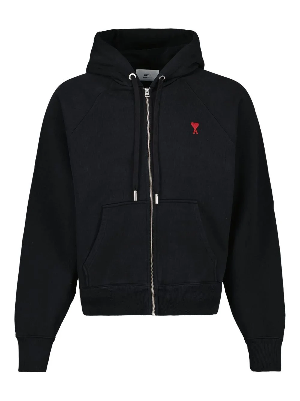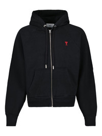 Ami de Coeur-embroidered zip-up hoodie Cut from soft organic cotton in Portugal, this zip-up hoodie from AMI Paris is cut to a relaxed silhouette and emblazoned with an Ami de Coeur embroidered motif at the chest for a subtle take on branding. Highlights - Black - Stretch organic cotton - Signature ami de coeur monogram motif - Embroidered logo at the chest - Drawstring hood - Front zip fastening - Long raglan sleeves - Two front pouch pockets - Ribbed cuffs and hem - Straight hem Imported Composition Organic Cotton 100%