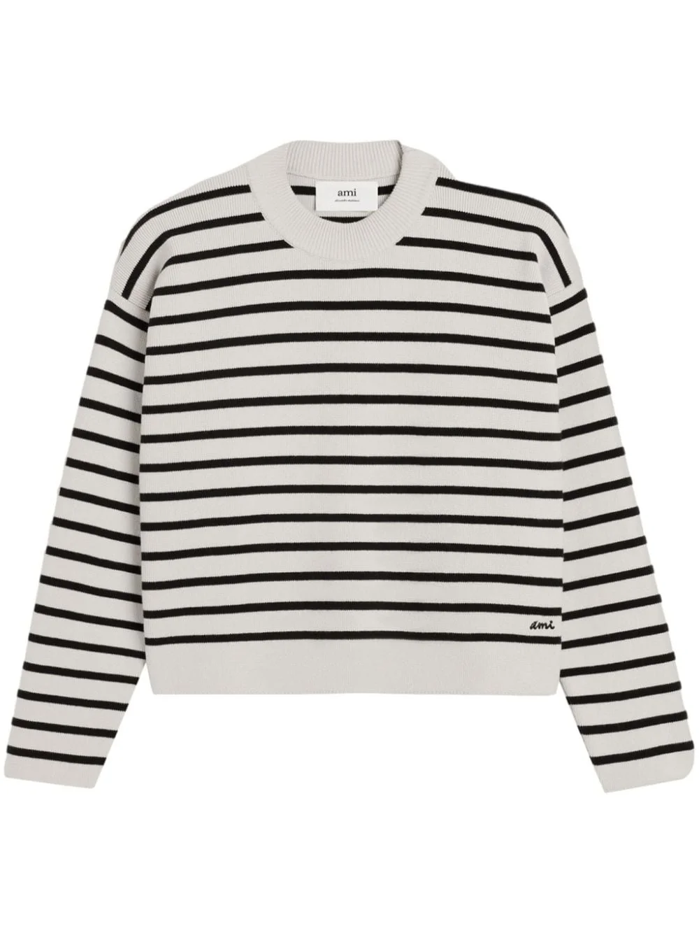 Sailor striped sweater Highlights - White/black - Organic cotton-wool blend - Horizontal stripe pattern - Intarsia-knit logo - Crew neck - Long sleeves - Straight hem - When buying this unisex item, keep in mind that it is graded in standard men's sizing. Made in Italy Composition Organic Cotton 85%, Wool 15% Washing instructions Read Manufacturer Guidelines
