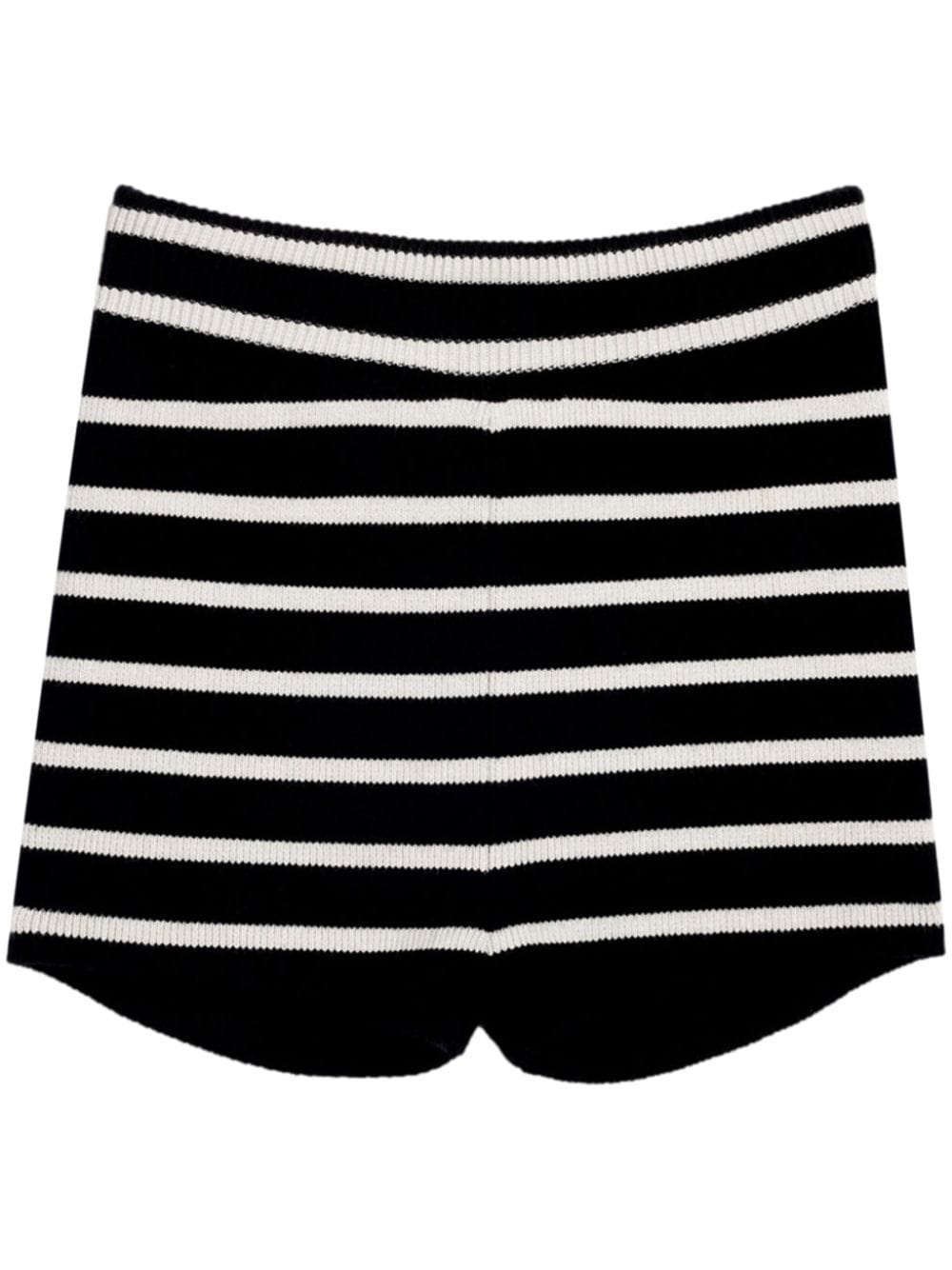 striped knitted mini shorts Highlights - Black/chalk white - Organic cotton-wool blend - Knitted construction - Horizontal stripe pattern - High-waisted - Ribbed waistband - This item is made from at least 50% organic materials. - Learn more about what makes a product conscious on our conscious criteria page Made in Italy Composition Organic Cotton 85%, Wool 15%