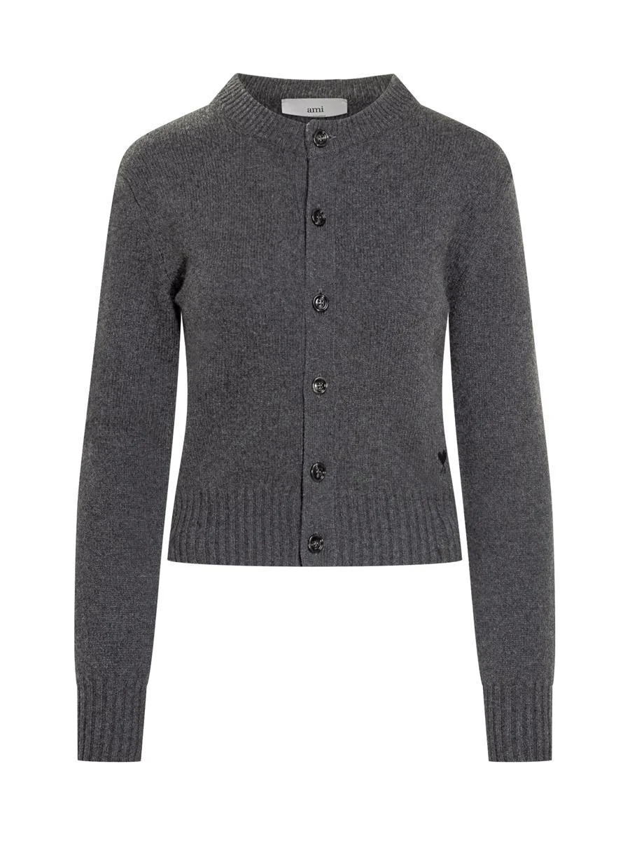 AMI Paris Ami Paris Grey Cardigan With Buttons And Logo