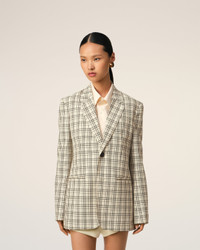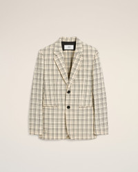 BEIGE CHECKED WOOL SEMI-LINED JACKET