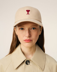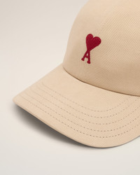 Cap in cotton gabardine with peach effect. Red Ami de Coeur chain stitch embroidery Cotton lining "Ami Paris" signature eyelets "Ami" signature adjustment buckle Adjustable strap One size only, 57 cm, adjustable at the back Made in Italy (with love) REF: UCP116.AW0041.725 SIZE & FIT One size. Adjustable at the back. COMPOSITION & CARE GUIDE 100% Cotton Do not wash Chlorine prohibited Do not tumble dry Do not iron Do not dry clean